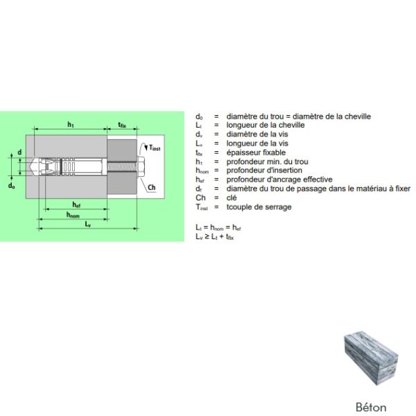 La structure spéciale à 4 secteurs garantit une large expansion et une adaptation facile, même sur des supports irréguliers.HLM a obtenu la certification CE Option 8 pour l'utilisation sur béton dans les zones non fissurées.