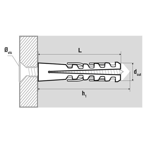Les encoches décalées permettent un bon ancrage de la cheville dans les matériaux agglomérés et l'empêchent de tourner.