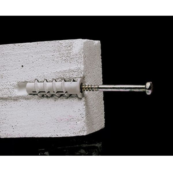 Le filetage externe en spirale découpe une forme dans le béton cellulaire et assure une tenue sûre.