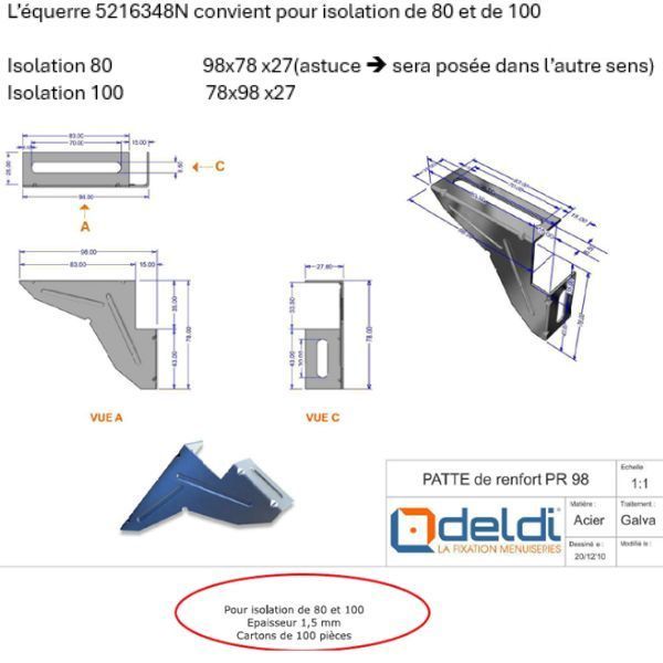 L’équerre 5216348N convient pour isolation de 80 et de 100 :