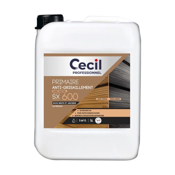 Primaire anti-grisaillement pour bois extérieurs : bardages, maison bois...s'utilise sur toutes les essences de bois résineux, feuillus ou tropicaux et est spécifiquement adapté aux essences nobles utilisées pour les maisons bois : Mélèze, Red cedar, Douglasaspect : liquide ambréviscosité : fluideapplication : pistolet, pinceau, pulvérisateur de jardinrendement : 5m² par litre en 2 couchesnettoyage outils : eauDangereux. Respecter les précautions d'emplois'utilise avec le saturateur SX 835. [...]