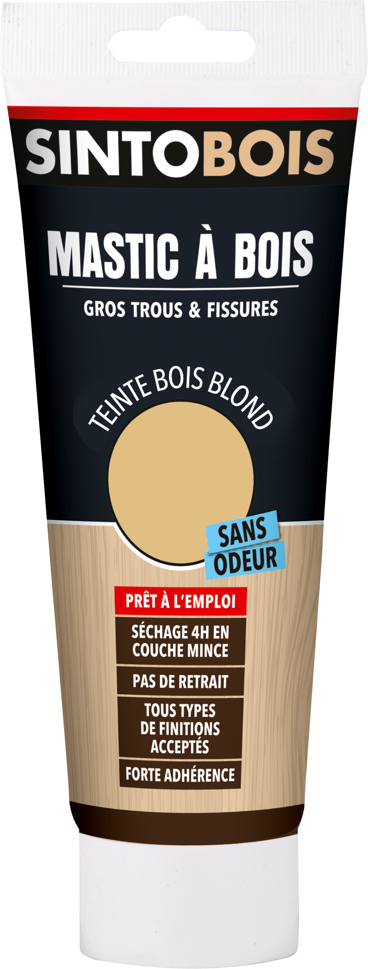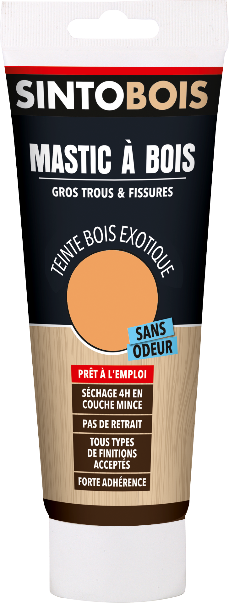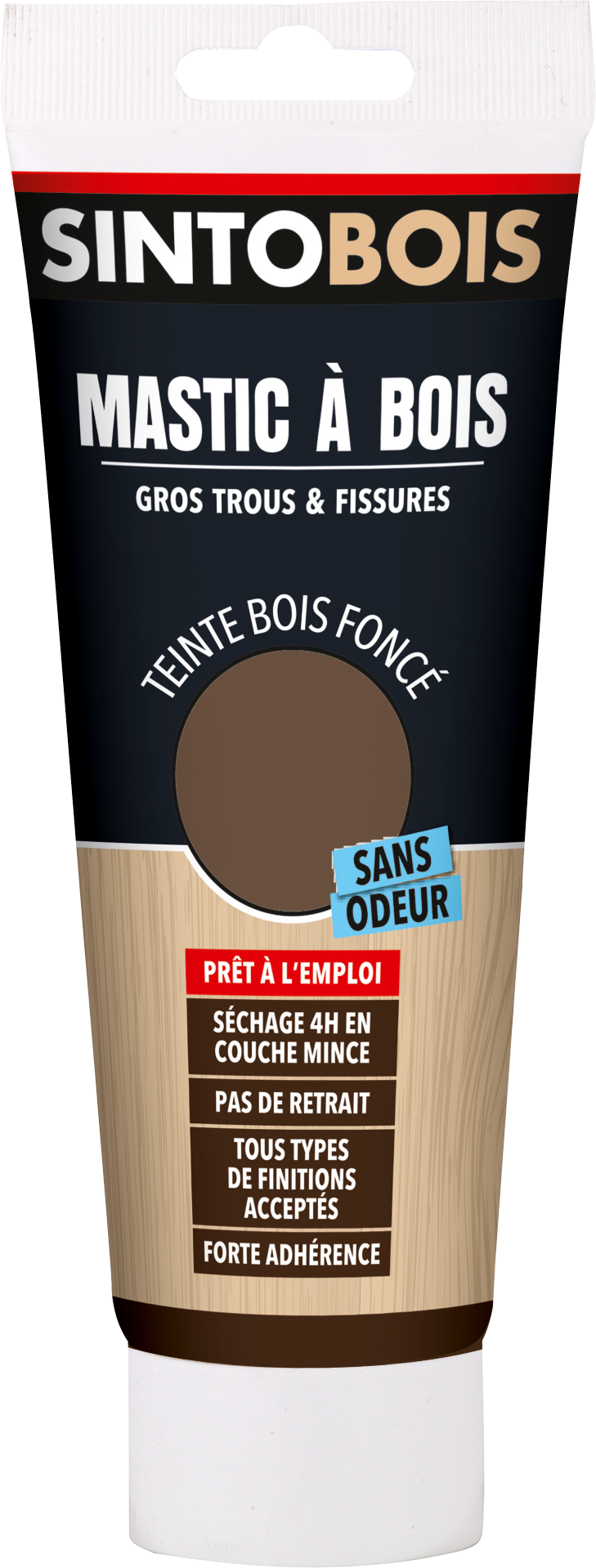 Mastic sans odeur prêt à l'emploi destiné au rebouchage de fissures et trous sur tout support bois