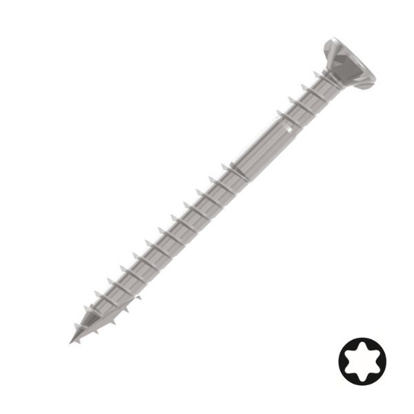 VIS TERRASSE RT UT A2 TF TORX INOX FIL S TETE SEAU EMBOUT INCLUS