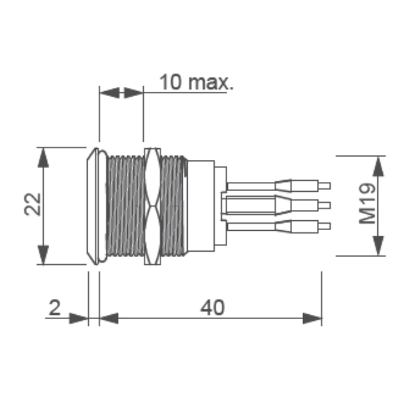 Diamètre de perçage pour intégration : 19 mm (épaisseur du panneau d’intégration de 1 à 10 mm)