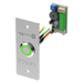 Le bouton poussoir alimenté en 12-24V AC/DC se raccorde sur une électronique déportée (intégrant un bornier à vis) à l’aide d’un connecteur JST.