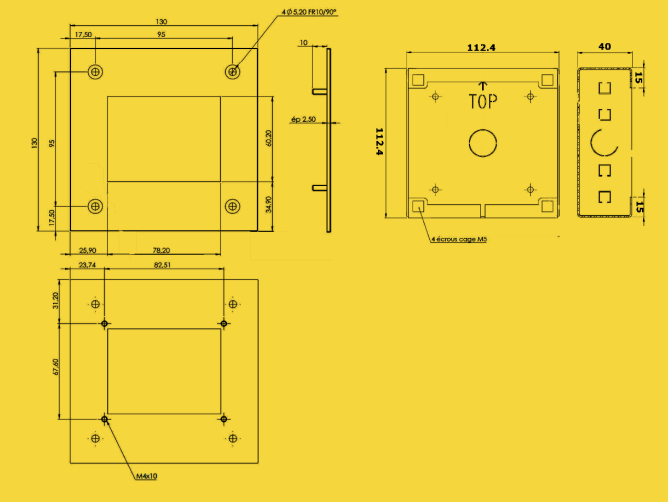| Dimensions boîtier seul | 112,4 x 112,4 x 40 mm |