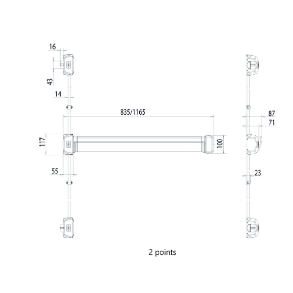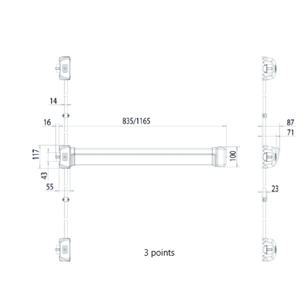 L’appui sur la barre commande la libération d’un verrouillage DAS (type ventouse) destiné au contrôle d’accès à l’entrée mais la sortie reste toujours libre