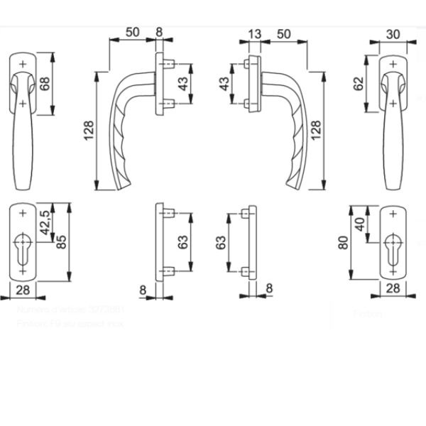 Garniture complète en aluminium anodisé ou époxy sur rosace pour porte fenêtre ligne New York
