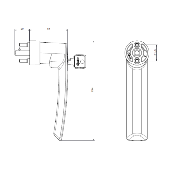 Poignée IRIS avec sélecteur à clef, entraxe 21,5 mm