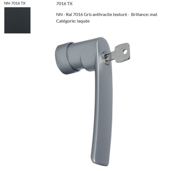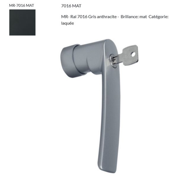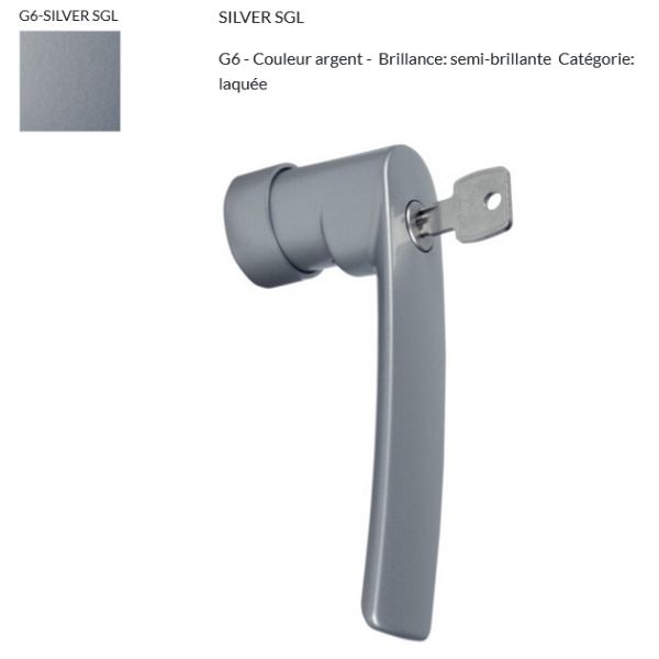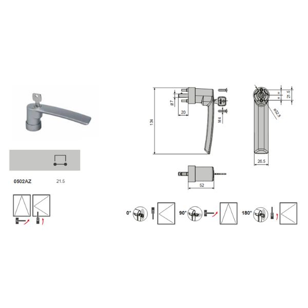 Poignée en aluminium moulé sous pression avec sélecteur à clé pour la rotation de la poignée à 90° et 180°. Composée d'une base de forme circulaire sur laquelle on va assembler à déclic la poignée en aluminium moulé sous pression. Son application demande l'utilisation du mécanisme 0520. Dans le conditionnement: un axe carré de 7mm.