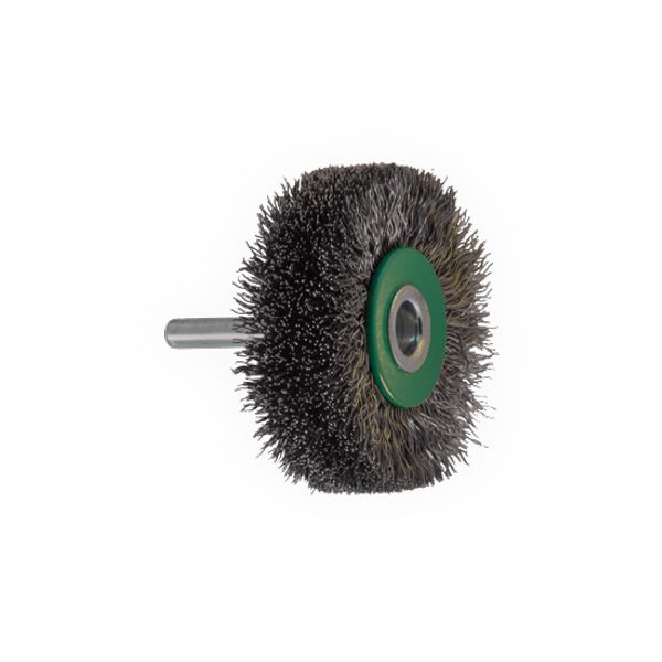 Brosse avec une densité de garnissage moyenne pour des applications légères et moyennes à haute vitesse.Vitesse de travail recommandée : environ 50% du tr/min max. Pour les travaux de nettoyage non destructifs et légers, l'ébavurage et le traitement des alésages.
