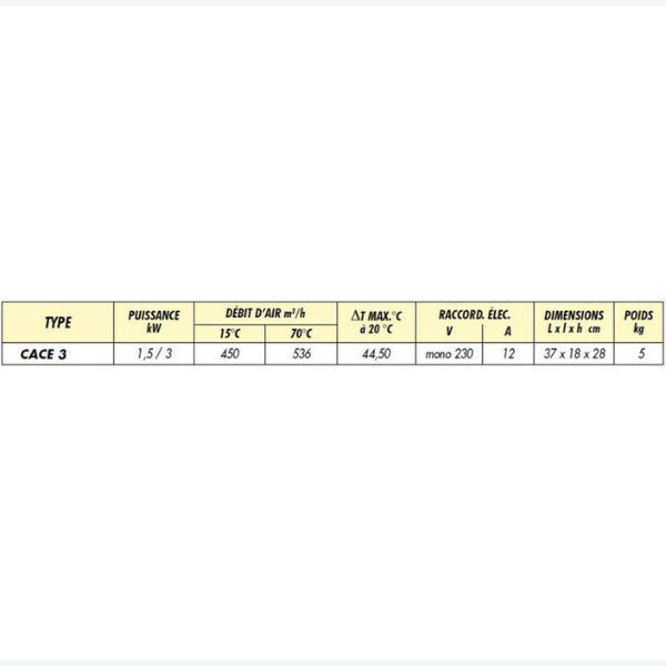 Débit d'air 450 m³/h, Delta T maxi 44.50°C,