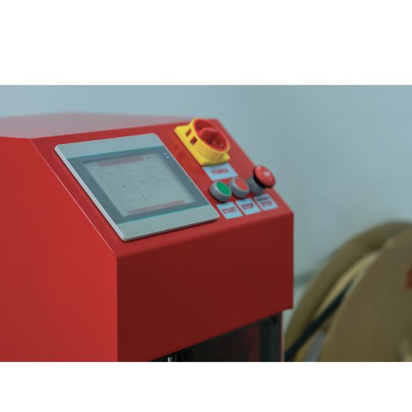 Elle se compose d’une unité pneumatique automatisée équipée d’un écran tactile pour la programmation et d’un porte-rouleau. Elle effectue la coupe à dimension des tringles et l’usinage avec un trou de 6 et 8 mm et du poinçonnage FP pour les pièces prévue à cet effet comme les articles 1563 (entraineur) et 1593 (galet excentrique). L’interface de programmation est très intuitive. Equipée d’une connexion Wi-Fi, d’un câble Ethernet et d’une entrée USB pour maintenir le logiciel constamment à jour.