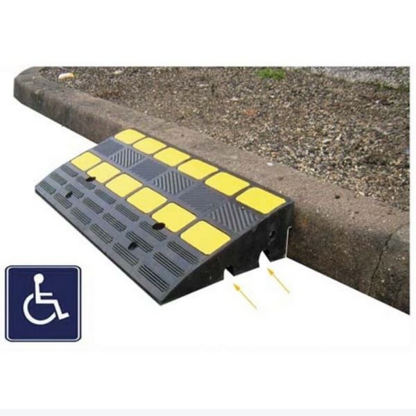 Rampes fixes pour trottoir.Permet de s'ajuster à +/- 2 cm au trottoir de 2 à 22 cm.Pour une installation provisoire ou fixe.Fabriquées en caoutchouc vulcanisé.Résiste jusqu'à 40 tonnes.Equipée de passe-câbles ou canaux d'écoulement des eaux de pluie.