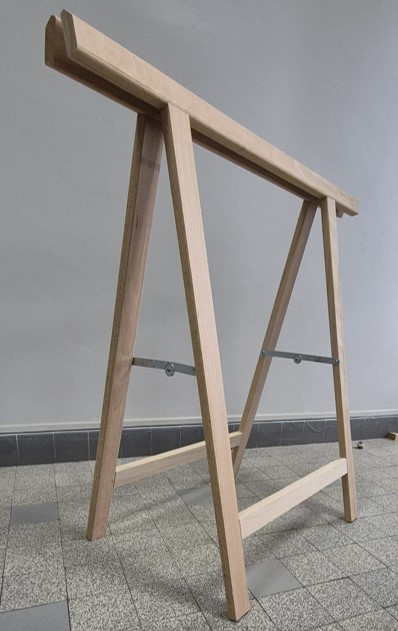 Hêtre assemblé par tenons et mortaises, chevillé, collé compas zingués de 200 mm charnières zinguées de50 x30 mm hauteur ouvert : 75 0 mm largeur :770 mm section des bois : 40 x 18 mm.