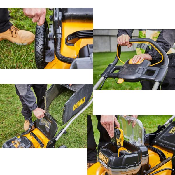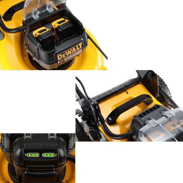 Fonctionne avec deux batteries DEWALT XR 18VPerformante : équipé d’un moteur Brushless, avec une largeur de coupe de 48 cm5 hauteurs de coupe ajustables par levier centralisé (25, 38, 57, 74 et 86mm)Tableau de bord avec indication sur l’état de charge de chacune des batteriesRoues en caoutchouc résistantes compactes et verrouillables pour le transport et le stockage facileFonction mulching & collecte de l’herbe dans le bacSac de ramassage en tiss [...]