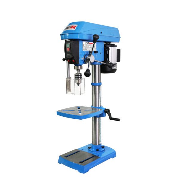 Variateur de vitessesaffichage numérique de la vitesseéclairage LED de la zone de perçagedeux lasers pour faire le point de centrageprotection mandrin asservi CM2/B16changement de vitesses par variateur mécaniquetable inclinable 45°D/45°Gcol de cygne : 155 mmcapacité de perçage max. (mm): 16cône morse: CM2course de la broche (mm): 80nombre de vitesses: 5vitesse de la broche (tr/min): 450-2500dimensions de la table (mm): 245 x 240entraxe rainurage de la table (mm): 12puissance moteur (kW): 0,55ten [...]
