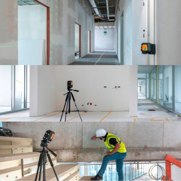 1 croix laserprécision : 'b1 3 mm / 10 mdiode : verteportée sans cellule : 15 mouverture d'angle Hz/VI : 110°/120°alimentation : 4x AA Alkaline /12 hindice de protection : IP 54alarme visuelle et sonore quand le laser n'est pas de niveausupport muraltrou pour fixation par vis ou aimants sur le dos du supportfiletages 1/4" & 5/8" pour utilisation sur trépiedslivré avec support mural, 4 x AA piles alcaline, sacoche de transport et carton quadri avec trou de fixation. [...]