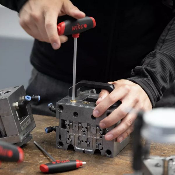 Manche en T multi-composants pour un comfort maximum. MagicRing fabriqué à partir du métal à ressort: maintient toutes les vis standards à divers angles. Lame monobloc traversante: résiste aux contraintes les plus fortes.