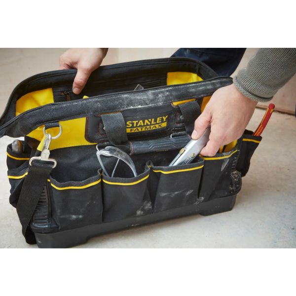 Sac À Outils 45 Cm en Polypropylène.Base rigide résistante à l’eau - Structure métallique pour une ouverture et un accès optimalAccès facile : structure spacieuseConfort : poignée en caoutchoucSans effort : fermetures à glissière faciles à fermerDurable : couture de la poignée renforcéeTissu : tissu robuste 600 deniers très résistantSécurité : renforts en cuir industriel aux poin [...]