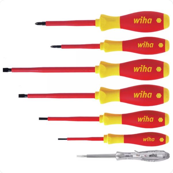 Jeu de 7 tournevis à fente/Phillips SoftFinish pour électriciens. Isolation jusqu'à 1000V c.a., certifié VDE et GS.