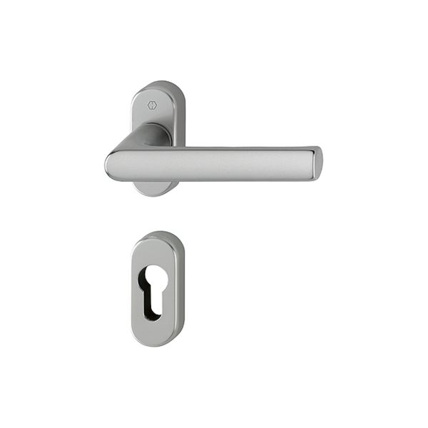 Garniture en aluminium sur rosaces avec rosaces à entré de clé.