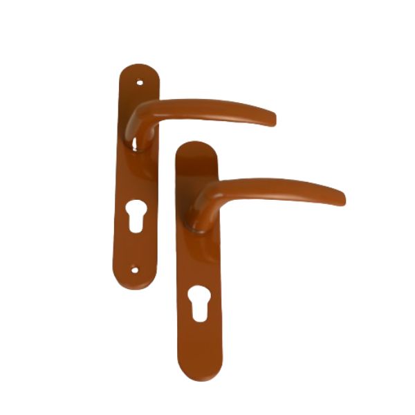 Garniture complète en aluminium anodisé sur plaque fondue pour porte intérieure.