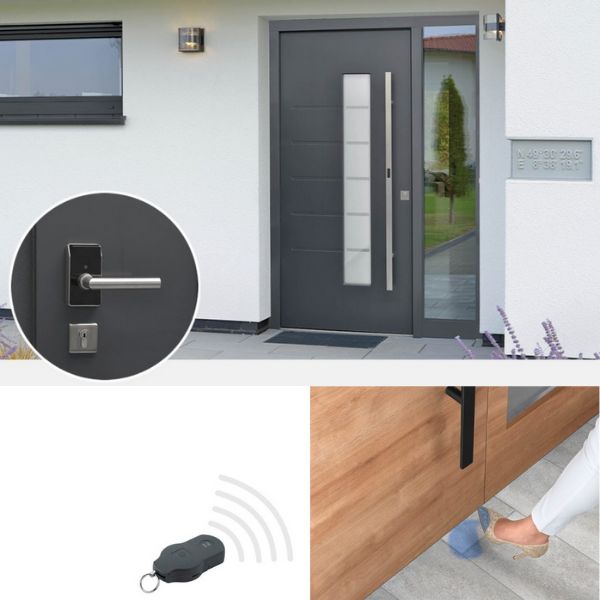 - Poignée battante : avec module radio, LED à l'extrémité inférieure pour générer le point lumineux au sol (4 couleurs sont disponibles au choix : blanc, bleu, vert, rouge) et capteurs de détection de mouvement- Distance d'installation : min. 20 cm à max. 50 cm entre l'extr&eacut [...]