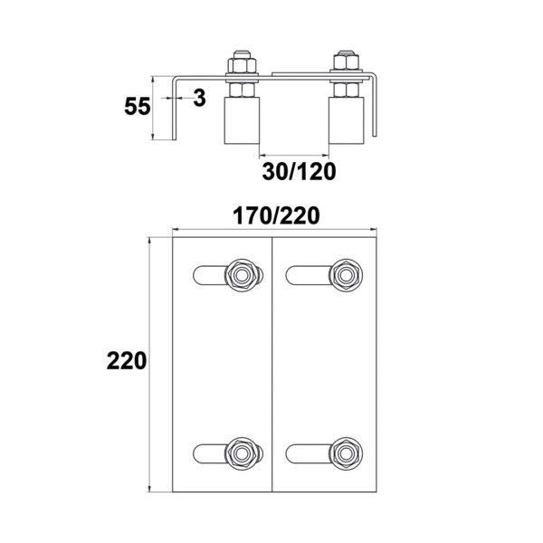 Plaque de guidage double réglage 4 olives Ø30mm, acier zingué blanc