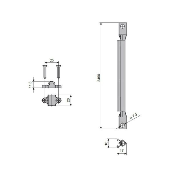 Tringle d'assemblage façonnée en aluminium extrudé livrée avec 2 guides tringle et 4 vis de fixation
