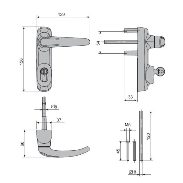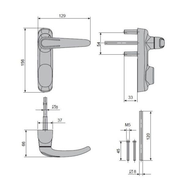 Corps et poignée en Zamak, mécanisme en acier, contre-plaque