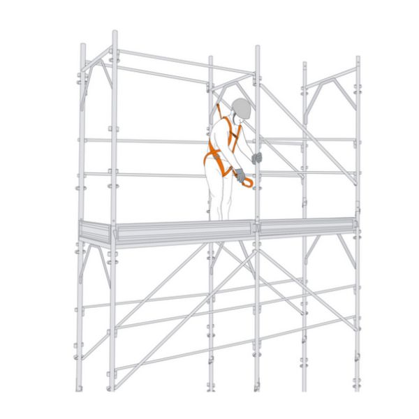 il est composé d'un harnais antichute 1 point dorsal, d'une longe double avec