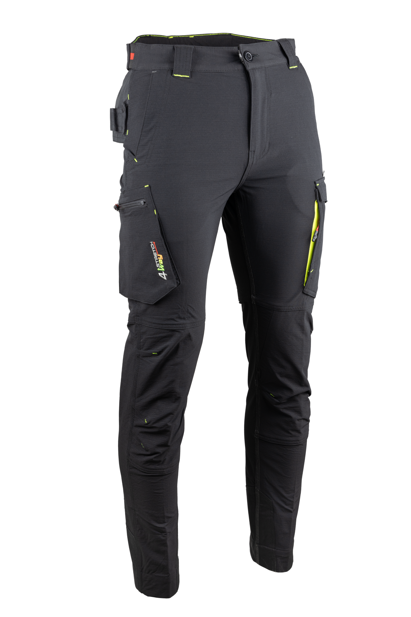 Bouton plastique 4 trous souple Ø 20mm - Braguette zip injecté plastique- Ceinture composée de 5 passants + 1 passant dos large avec réhausselombaire, bande élastiquée anti-glisse resserrable par pattes extensiblesdos - Poches italiennes - Poche cuisse gauche fermée par rabat etscratch - Surpoche fermée par zip - Poche cuisse droite à soufflet, ferméepar zip, avec ouverture poche mètre - Poche dos gauche à soufflet, avecrabat fermé par scratch - Support porte marteau semi volant en Oxford300 [...]
