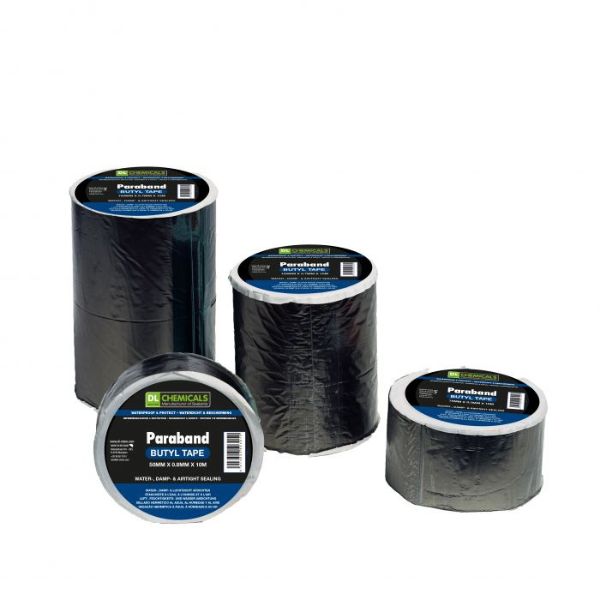 Bande d'étanchéité en feuille d'aluminium laquée et enduite d'un revêtement bitumineux autocollant à froid.