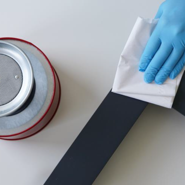 Lorsqu’on appuie sur l’assiette de dosage, le nettoyant est pompé sur l’assiette ce qui humidifie/imprègne le chiffon de nettoyage préalablement posé sur l’assiette de dosage. Le surplus de nettoyant reflue dans le réservoir de stockage