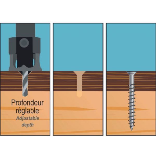 - Le forêt alésoir permet le perçage et l’alésage de la lame de bois, en une seule étape.