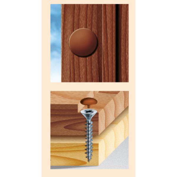 Vis spécialement conçues pour un usage décoratif en agencement et ameublement.Leur tête fraisée est étudiée pour accueillir un capuchon plastique Mustadqui cache ainsi esthétiquement la tête de vis.