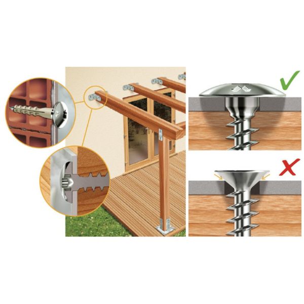 - Peut être utilisée avec cheville 8mm pour pose de menuiserie avec équerre (applique)