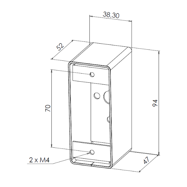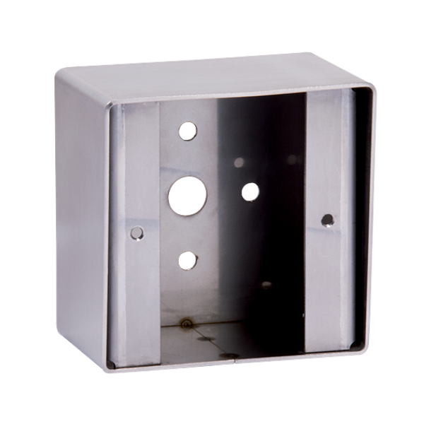 Boîtier de montage en applique pour gamme bouton poussoir INOX sur plaque.