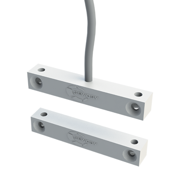 Le raccordement de ces contacts à encombrement réduit s'effectue avec ses trois fils sortants, nécessaires pour le système C/NO/NC. Lorsque la porte se ferme, l'aimant permanent monté sur l'ouvrant se rapproche du capteur intégré dans la feuillure de la porte (ou dans le dormant en cas de réservation existante). C'est alors que le contact inverseur normalement fermé (NC) au repos modifie son état en normalement ouvert (NO). Le report d'information vers un système de contrôle d'accès à distance ou une centrale de surveillance est ainsi activé, indiquant que l'accès est clos.