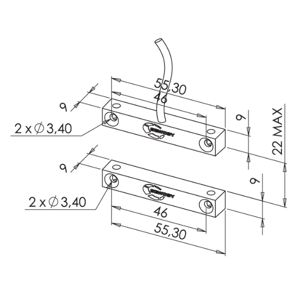 Peut aussi s'intégrer dans les feuillures des huisseries.La fixation est frontale ou latérale selon les besoins.Câble de 10 m compris dans la livraison, permettant d'adapter la connexion à de multiples configurations de pose.