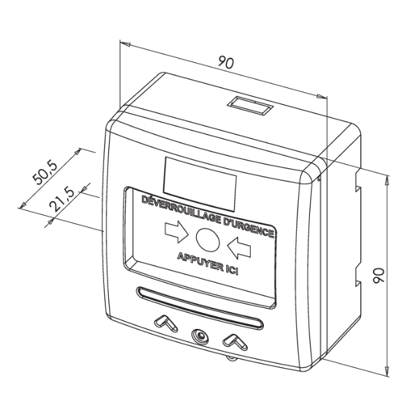 - Support de clés positionné de part et d’autre du boîtier de mise en applique facilite leur accessibilité et minimise le risque de perte (les deux clés de réarmement fournies se rangent à l’arrière, dans la réservation prévue à cet effet).