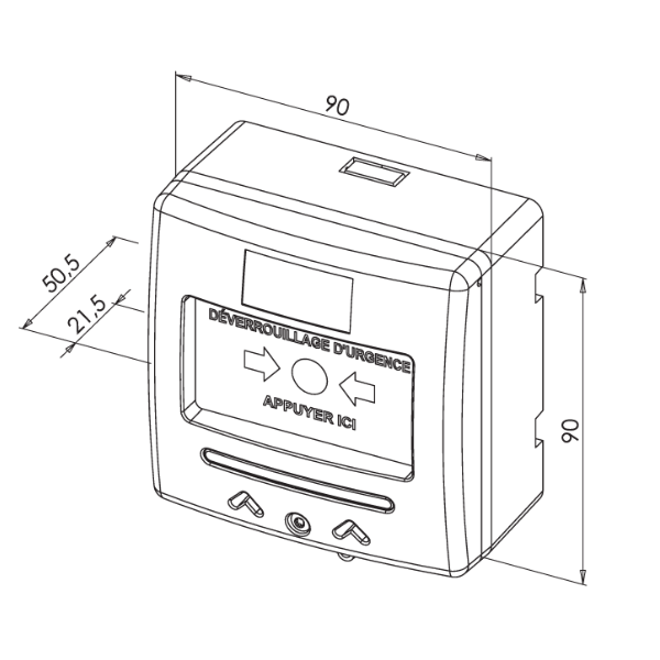- Support de clés positionné de part et d’autre du boîtier de mise en applique facilite leur accessibilité et minimise le risque de perte (les deux clés de réarmement fournies se rangent à l’arrière, dans la réservation prévue à cet effet).