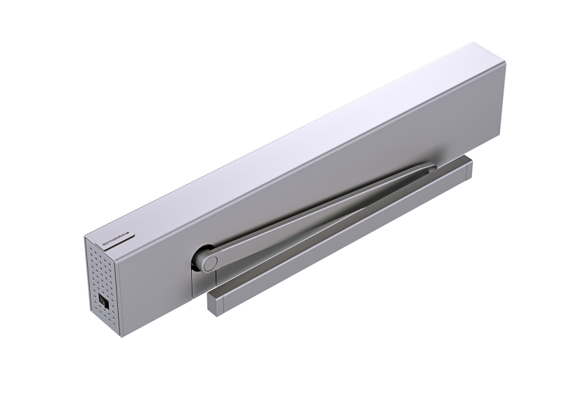 - Montage poussant sur la traverse côté opposé aux paumelles avec bras compas (profondeur de linteau : de 0 à + 225 mm)