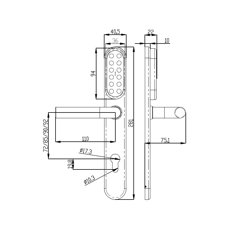 Support d'installation compatible : rès adaptative (compatible avec les cylindres les plus utilisés). Perçage, aucun câblage. Portes allant de 30mm à 110mm