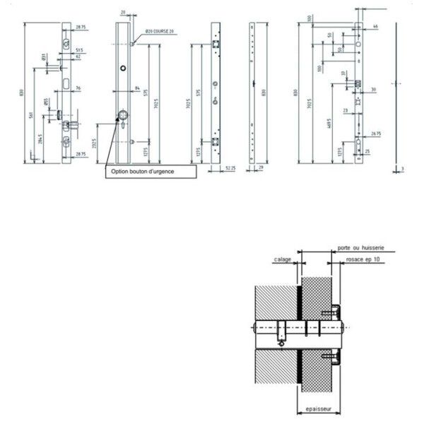 - Épaisseur de porte : Minimum 37 mm. Maxi selon longueur possible cylindre (≈100 mm).