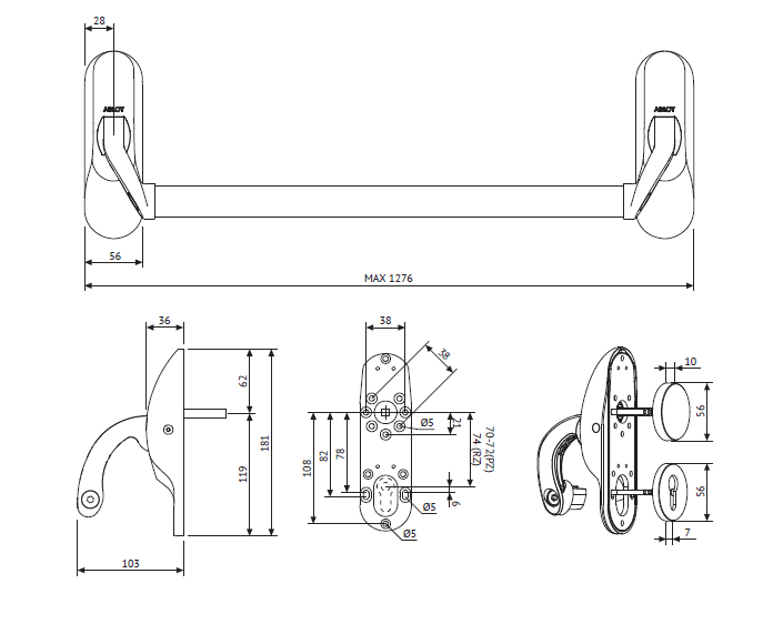 - Pour serrures entraxes 70, 72 et 92 mm.
