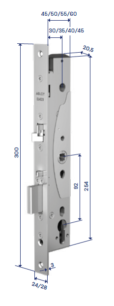 Pour encore plus de sécurité, les serrures motorisées sont déclinées en versions multipoints : les modèles MP520, MP524 et MP420 reposent sur un coffre central principal motorisé issu des modèles monopoint EL520/524 et EL420 qui pilote deux coffres auxiliaires avec des pênes crochets.
