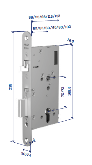 Le large choix de dimensions au standard européen pour tous les types de portes (aluminium, bois, profils étroits ...) avec une variante aux dimensions françaises, offre une grande liberté architecturale pour l'organe de manoeuvre (béquille, poignée de tirage, ...).