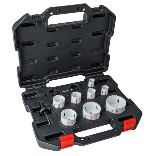 - 8 scies trépans (Ø 22-25-29-35-40-51-60-67 mm), profondeur 38 mm